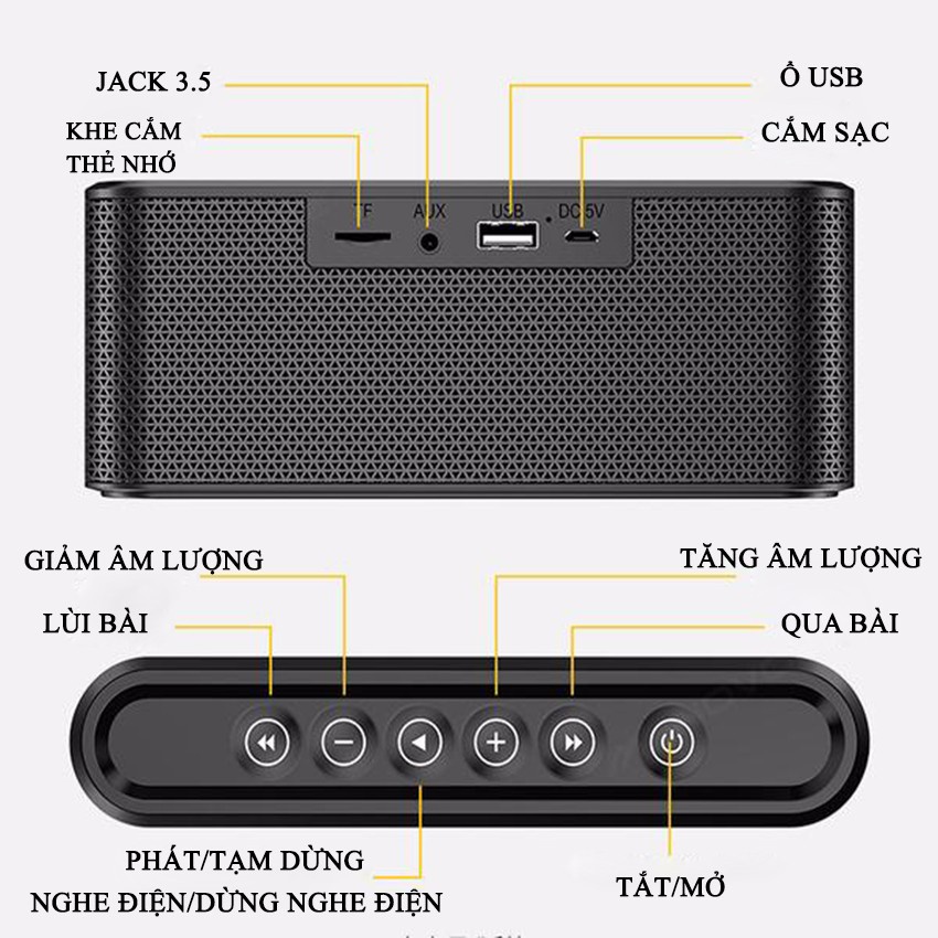 Có thêm đầu vào âm thanh phụ 3,5 mm, thẻ TF và chế độ đĩa USB cho các thiết bị không Bluetooth.