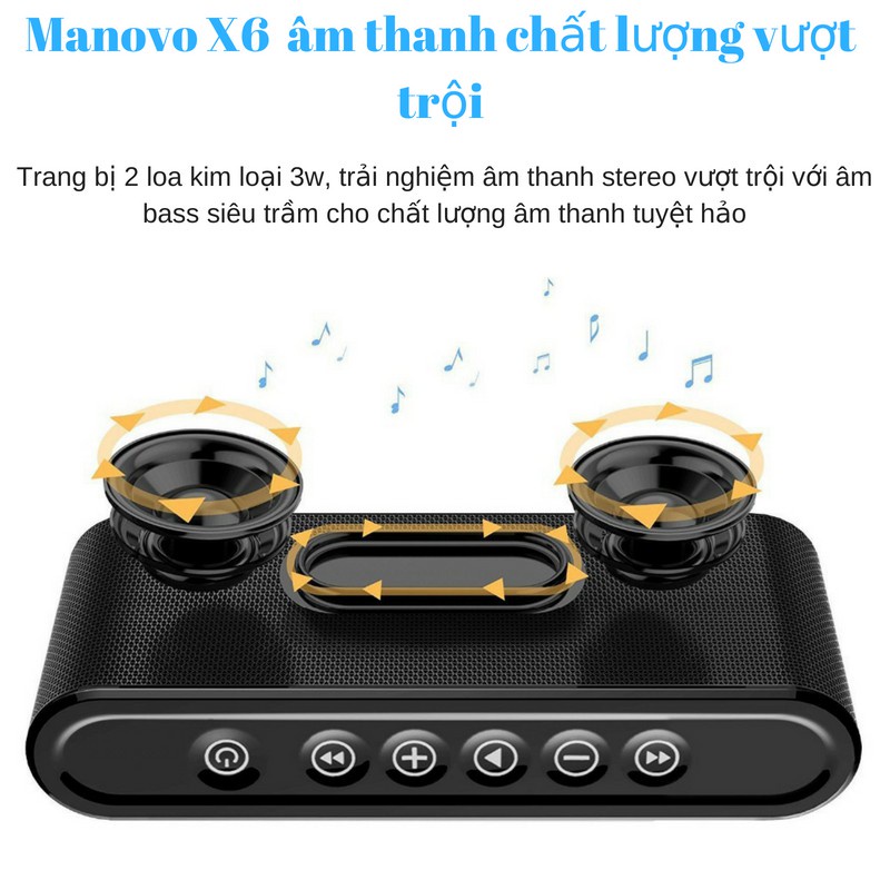 💥 Tên sản phẩm: Loa bluetooth manovo x6 nút bấm cảm ứng, siêu bass vỏ nhôm nguyên khối công suất 6W thời gian sử dụng 8H