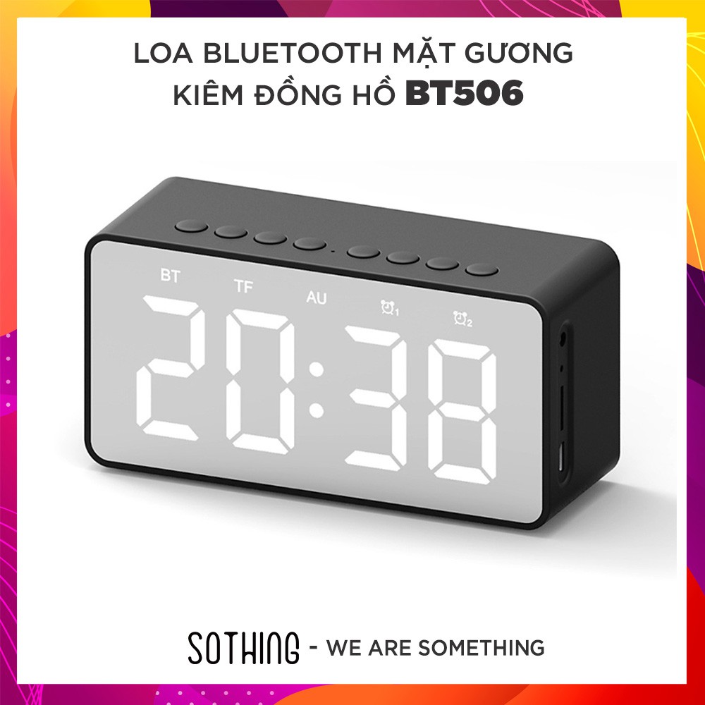 Loa Bluetooth Mặt Gương Kiêm Đồng Hồ Báo Thức BT506 V5.0 - Có Khe Cắm Thẻ Nhớ