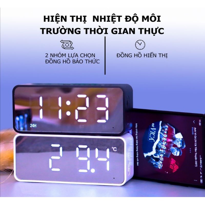 Loa Bluetooth Mặt LED Gương hỗ trợ Xem Giờ -Báo Thức- Đo Nhiệt Độ - chất âm cực hay - cực ấm
