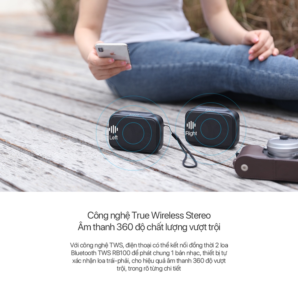 ✔ True Wireless Stereo, với công nghê TWS điện thoại đồng thời có thể kết nối đồng thời 2 loa Bluetooth TWS RB100 để phát cùng chung 1 bản nhạc, thiết bị tự xác nhận loa trái-phải, cho hiệu quả âm thanh 360 độ vượt trội, trong từng chi tiết