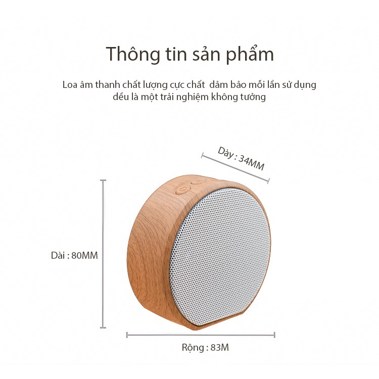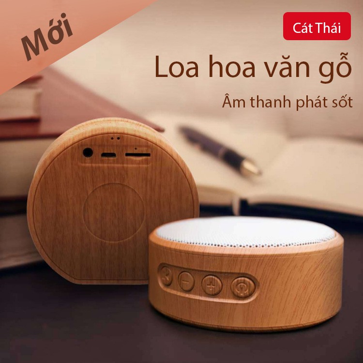 Loa bluetooth mini A60 (màu trắng) Cát Thái hoa văn gỗ cực thanh lịch nhỏ gọn dễ mang, âm thanh rõ ràng, hỗ trợ cổng USB