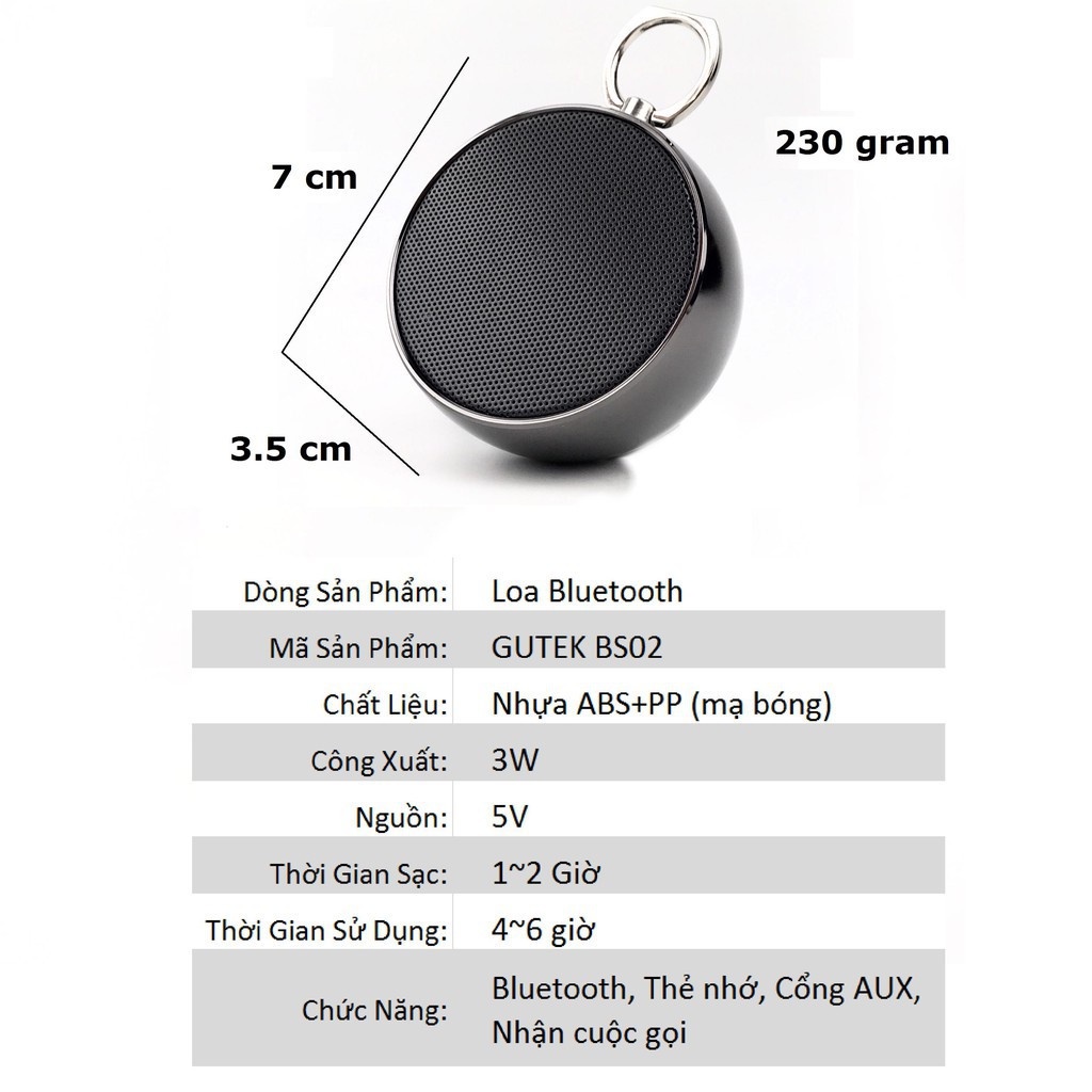 📌 Thời gian sử dụng: 3-5giờ (tùy theo âm lượng sử dụng)