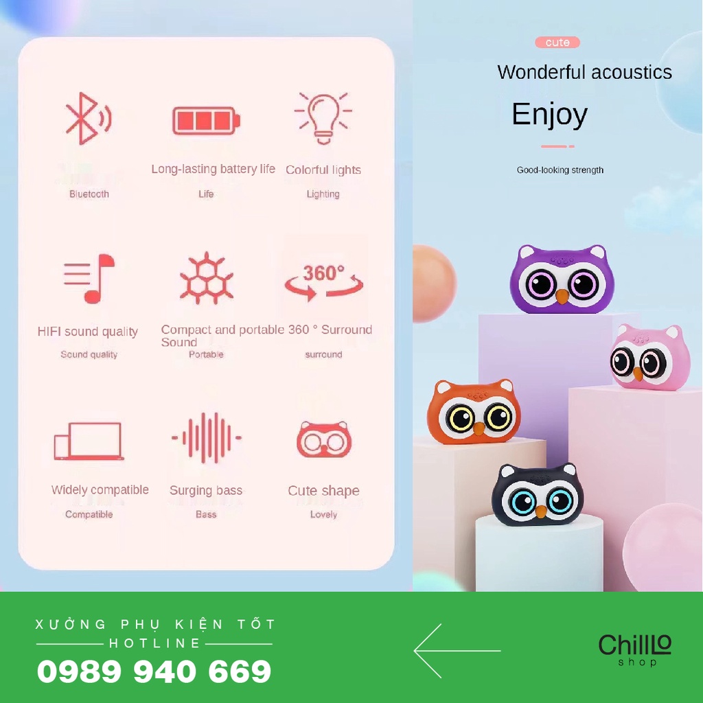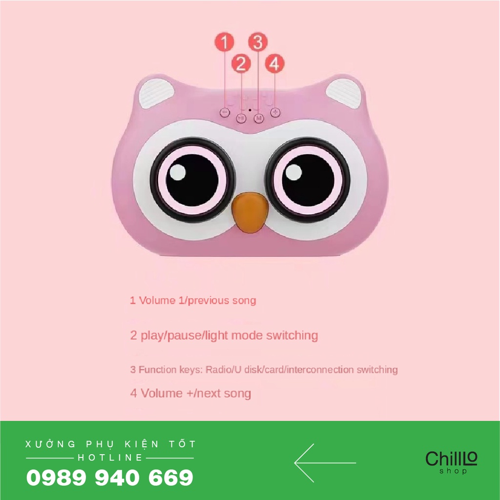 Thiết Bị Âm Thanh > Dàn âm thanh > Loa || Loa Bluetooth Mini Cute L-23 Loa Cú Mèo Có Đèn Led Nhỏ Gọn, Tiện Lợi Mang Theo - Hỗ Trợ Thẻ Nhớ TF, USB, Aux 3.5mmCòn hàng