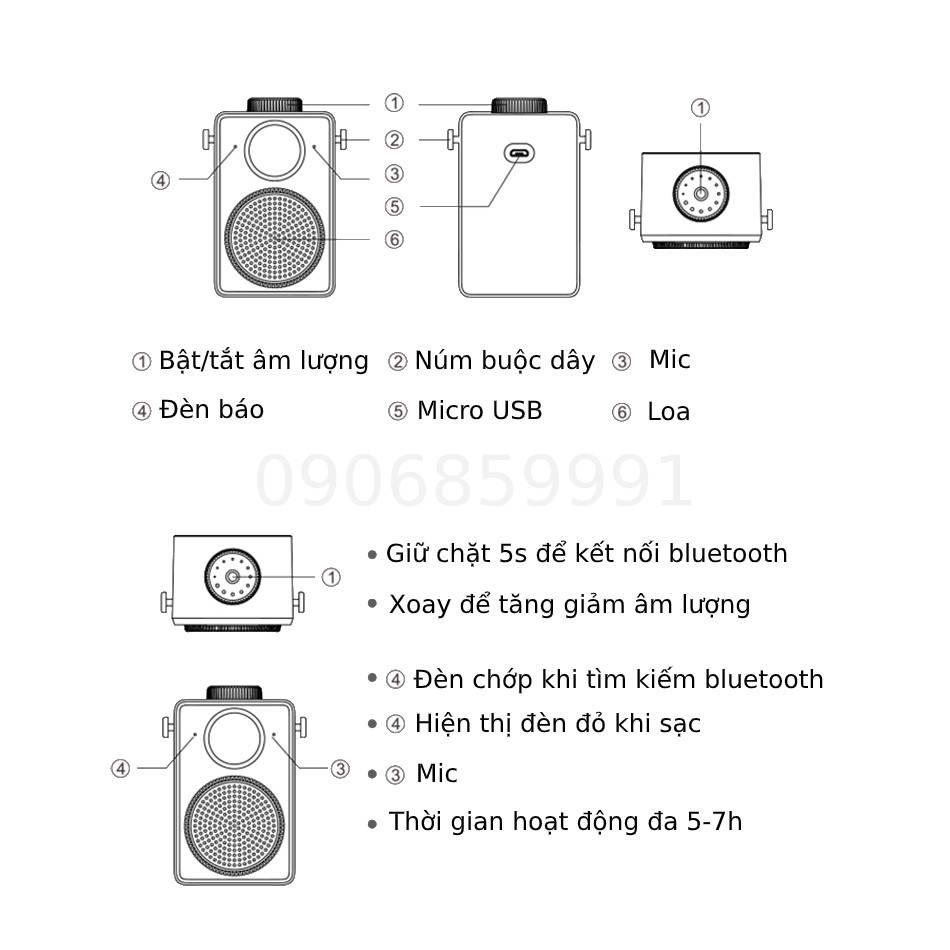 - Thời gian phát nhạc lên : 6-8h tùy âm lượng