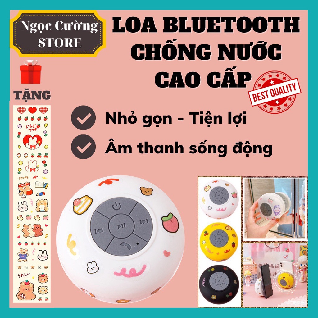 Loa bluetooth mini dễ thương chống nước LOẠI CAO CẤP, loa nhà tắm gắn tường nhỏ gọn tiện lợi sử dụng- tặng sticker