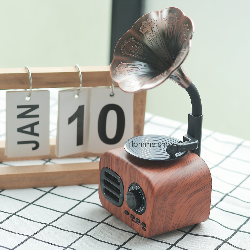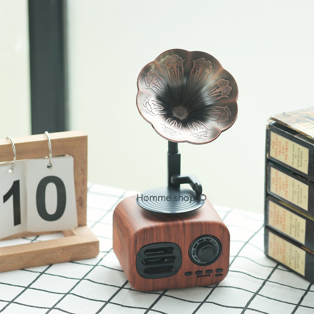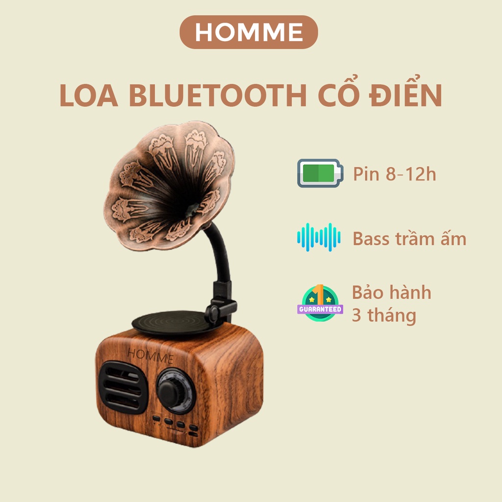 Loa bluetooth mini của Homme với kiểu dáng đĩa hát vô cùng dễ thương mô phỏng lại những chiếc loa thập niên 90. Loa có màu vân gỗ cổ điển phù hợp cho những ai thích phong cách hoài cổ .