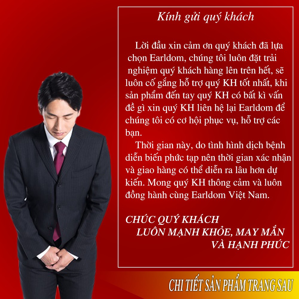 ✔️ Các bạn đặt đúng sản phẩm mình thích, không đặt hàng qua GHI CHÚ. Nếu lưu ý đặc biệt hãy inbox cho Earldom, Earldom luôn sẵn sàng hỗ trợ bạn.