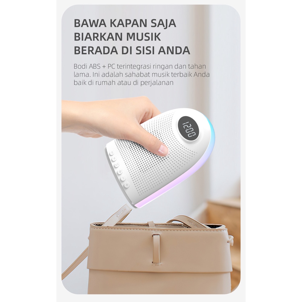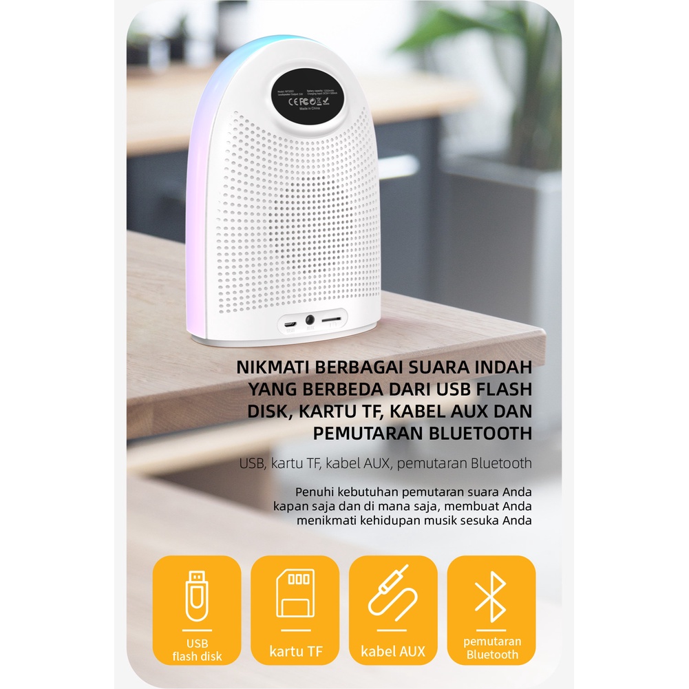 Loa bluetooth mini FengZhi Life cao cấp 5w 5.0 bass pin trâu 1200mah khe thẻ nhớ đồng hồ đèn led chính hãng phòng ngủ