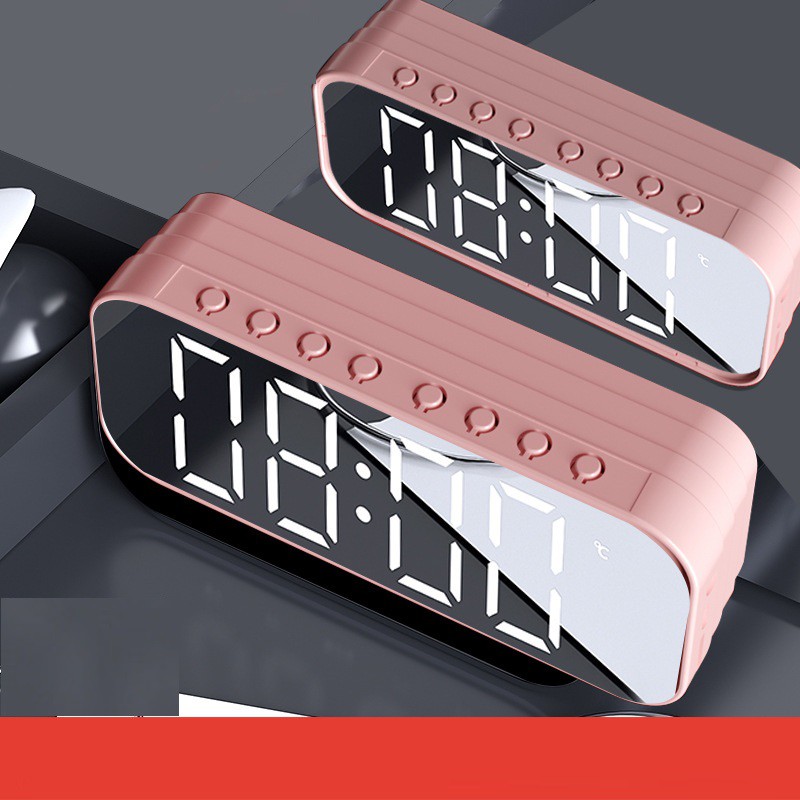 Loa Bluetooth mini Freeship loa nghe nhạc giá rẻ kèm đồng hồ mặt gương sang trong