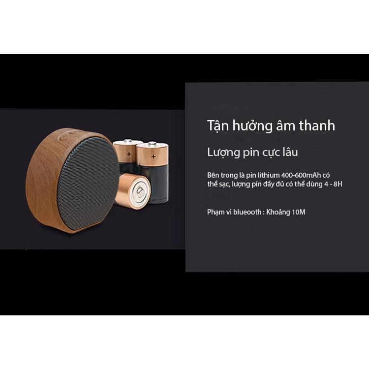 Loa Bluetooth Mini không dây vỏ gỗ A60 , Bass mạnh, Pin trâu -DC3547