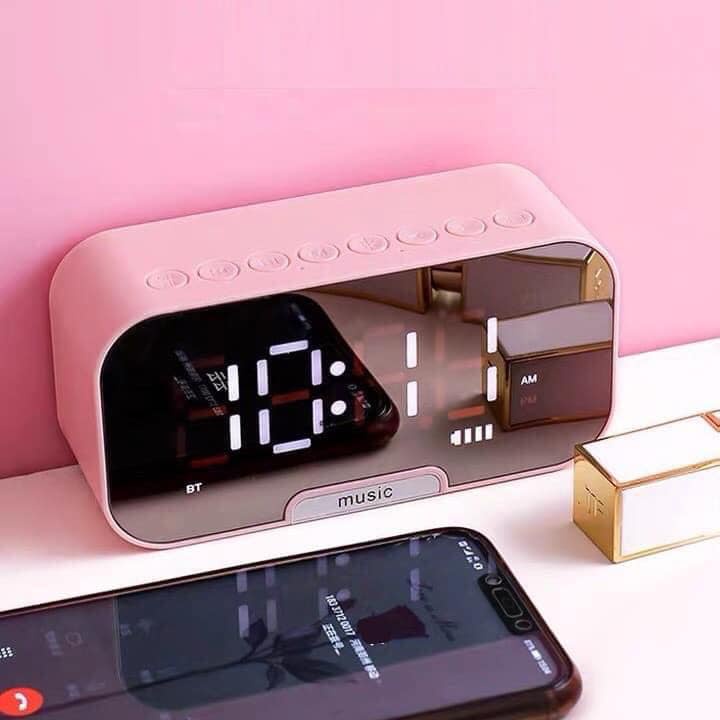 Loa Bluetooth Mini Kiêm Đồng Hồ Báo Thức ,Nghe Đài FM, Màn Hình Tráng Gương Hiển Thị Đèn Led