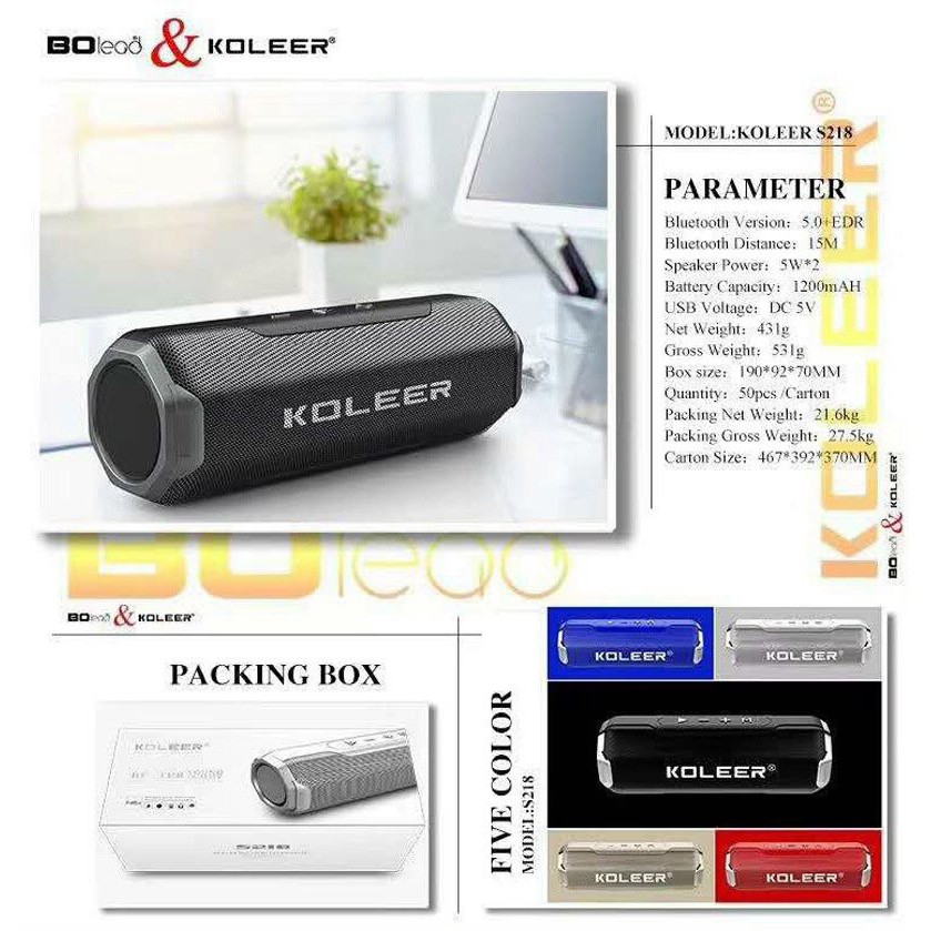 - Tên sản phẩm: Loa bluetooth bass cực mạnh, chống nước Koleer-S218 cao cấp chính hãng