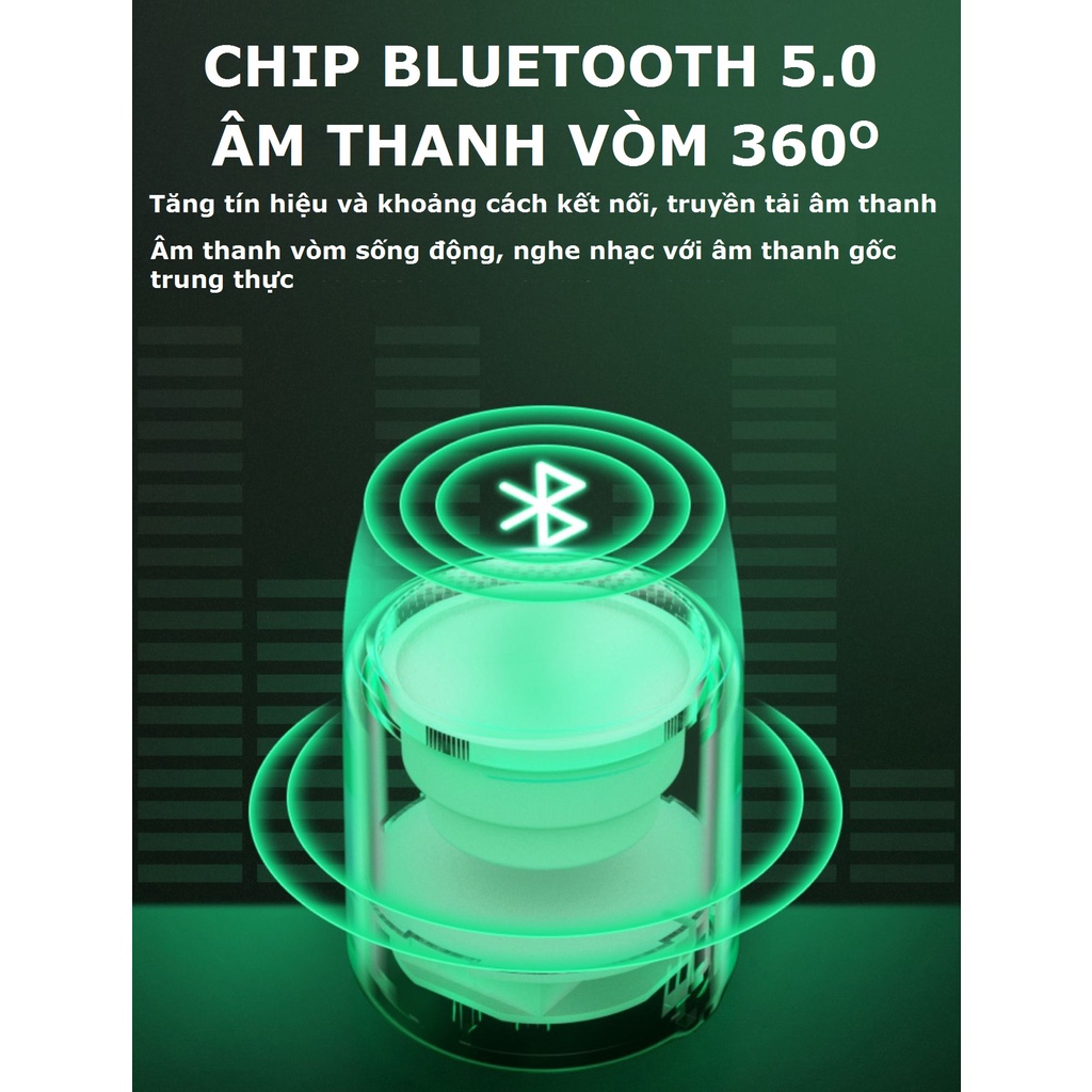 - Loa bluetooth mini sở hữu chip bluetooth phiên bản 5.0 giúp tăng khoảng cách và khả năng truyền tải kết nối không dây với âm thanh tốt hơn.