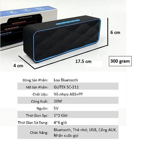- Tên sản phẩm: Loa bluetooth Gutek SC211