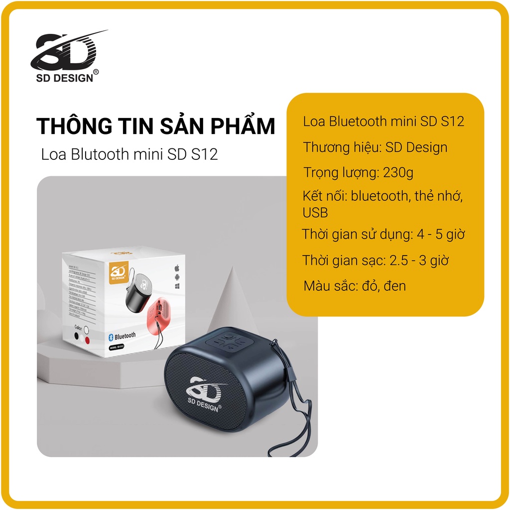 Loa Bluetooth Mini S12 Không Dây Chính Hãng SD Design Nghe Nhạc Hay Âm Thanh Chất Lượng Hỗ Trợ Cắm Thẻ Nhớ Và Usb