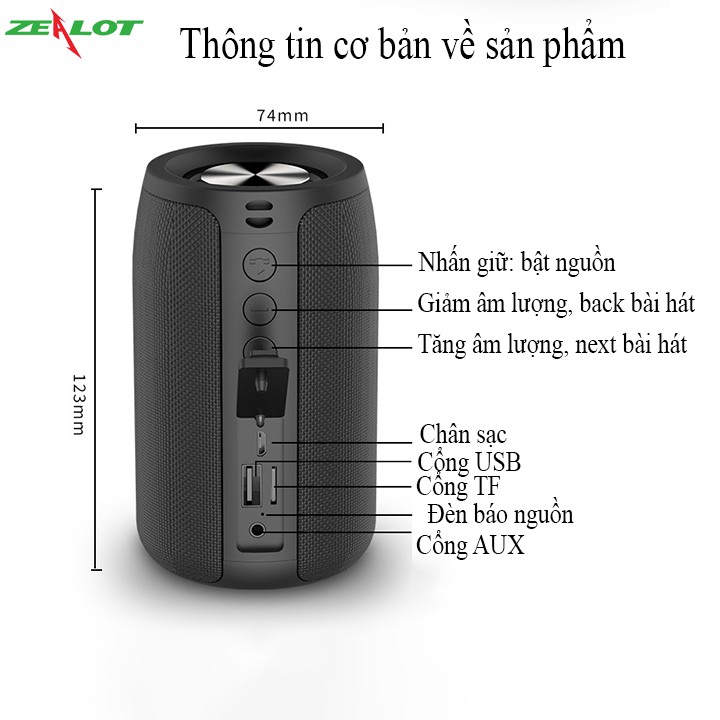 Giới thiệu [Mã ELHACE giảm 4% đơn 300K] Loa bluetooth mini Zealot S32 - Hàng chính hãng - Bảo hàng 12 tháng