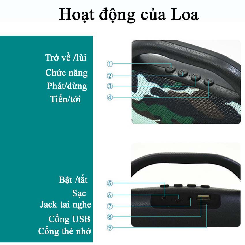 Loa Bluetooth MP3 Đa Năng Nghe Đài FM, Thẻ nhớ, USB Pin 1200mAh Nghe Nhạc - 8 Tiếng