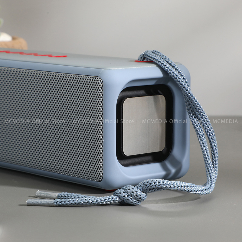 Mặt trên được làm bóng kết hợp các phím bấm điều khiển có cả dây đeo rất tiện lợi, mặt sau loa là nút Mở/Tắt nguồn, kèm theo các kết nối cơ bản như USB, Thẻ nhớ, AUX,….