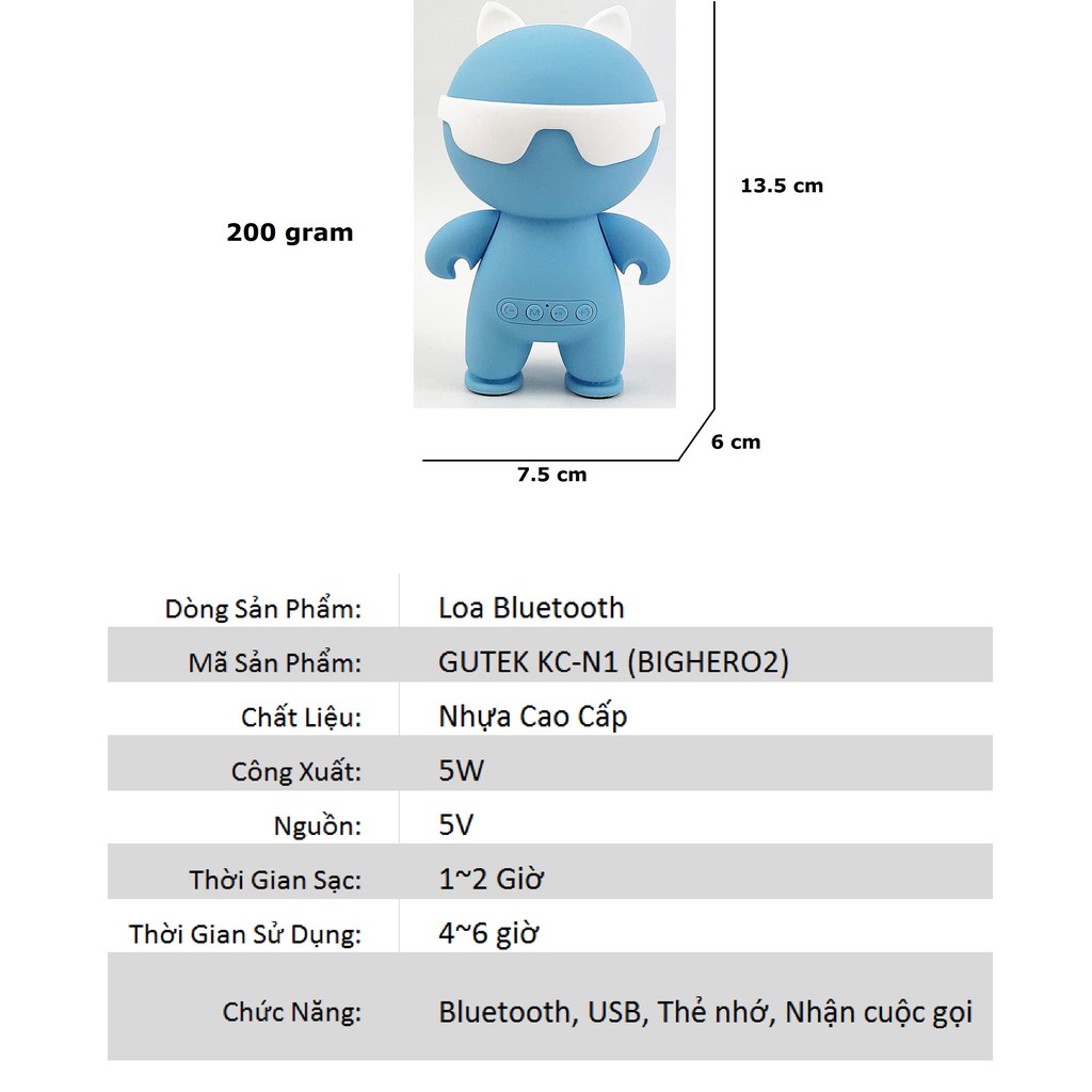 - Thiết kế hình dáng chú robot BigHero xinh xắn, dễ thương giúp bạn vừa có 1 chiếc loa trang trí vừa là 1 món đồ trang trí trong không gian phòng bạn