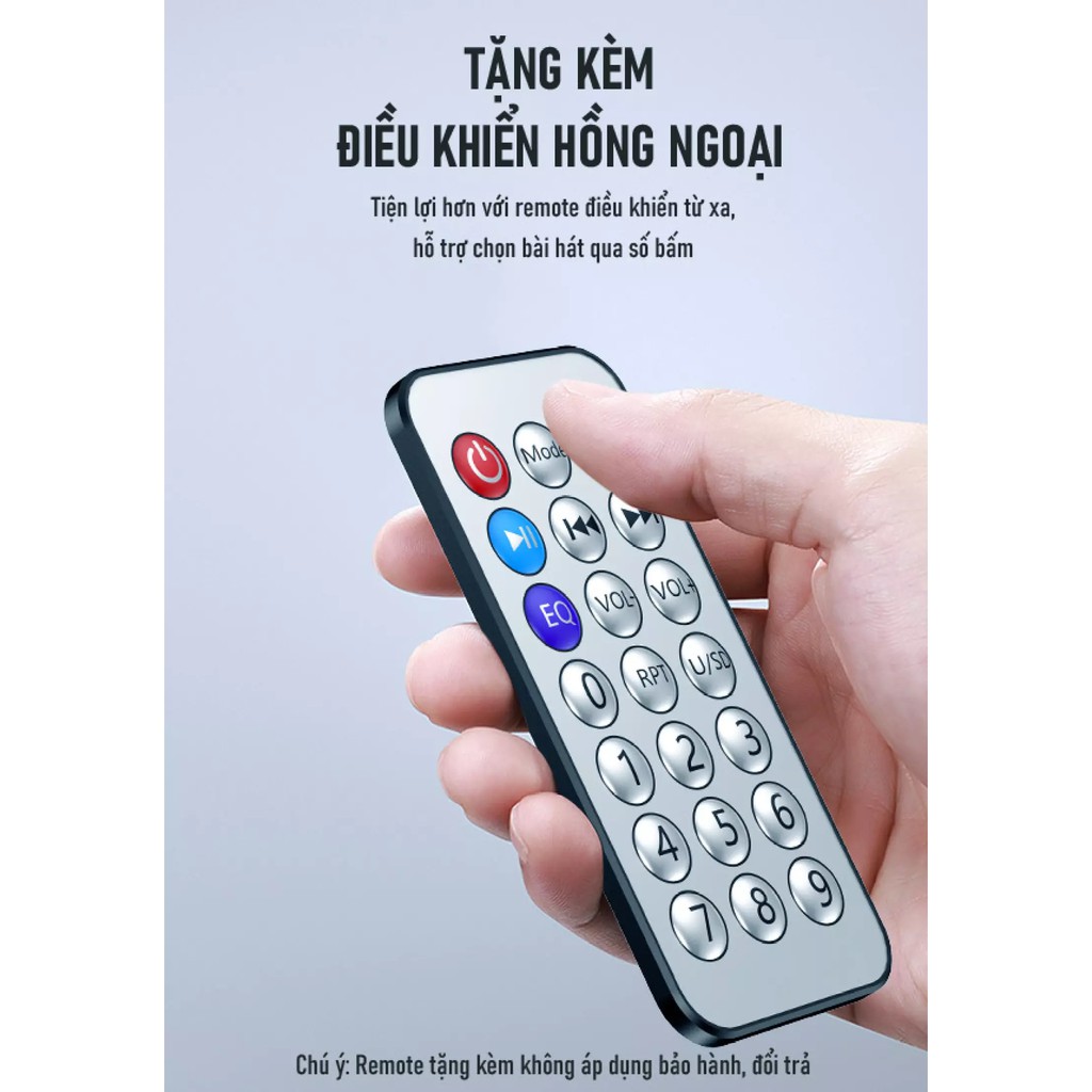 • Kết nối: Bluetooth, thẻ nhớ MicroSD, USB, AUX, nghe đài FM