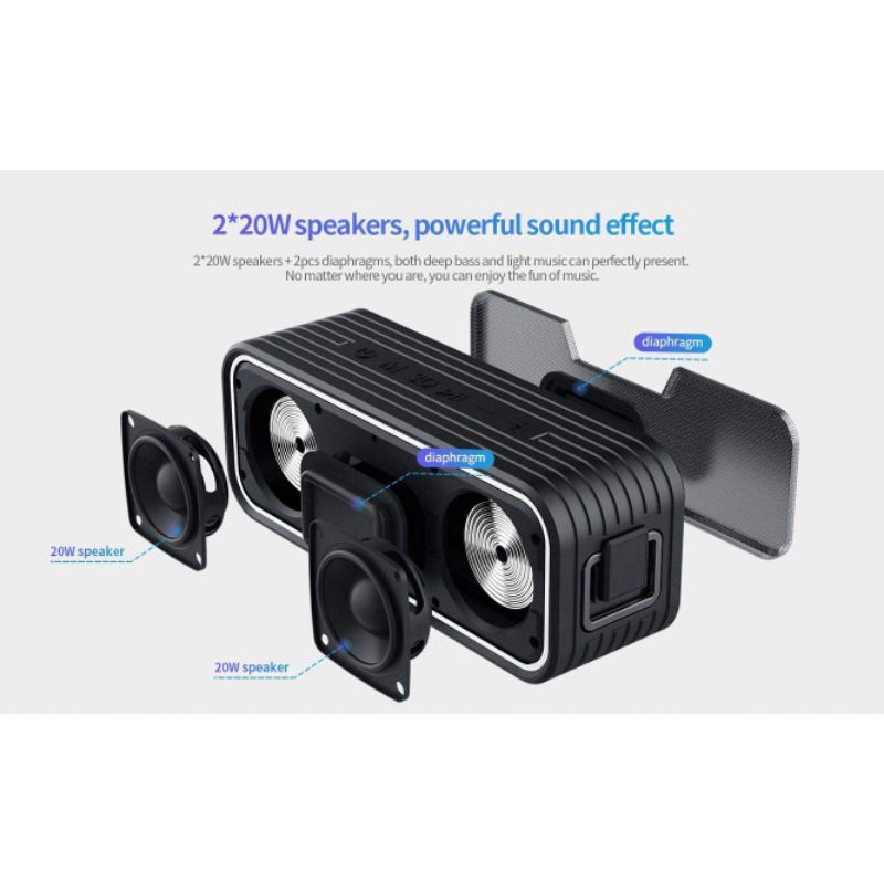 - Hệ thống loa kép với công xuất 20W*2 sẽ làm chuyến đi của bạn cực vui . Bluetooth V5.0 phạm vi kết nối lên đến 15m , cho phép kết nối TWS (Kết nối nhiều loa tạo hiệu ứng âm thanh vòm)