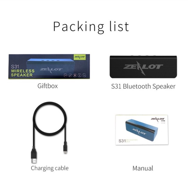 Thiết Bị Âm Thanh > Dàn âm thanh > Loa || Loa Bluetooth Pin Trâu 2000MAh Zealot S31 Âm Thanh HayCòn hàng
