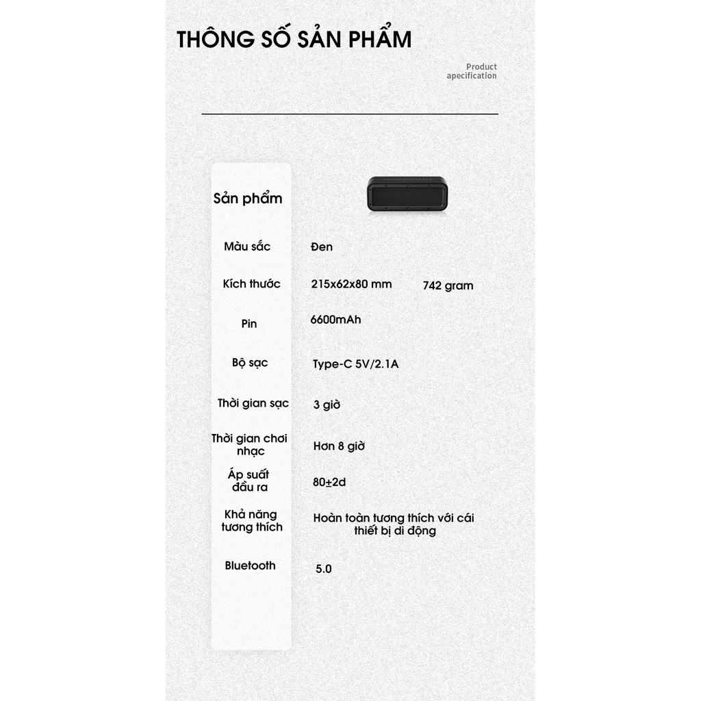- Pin 6600 MAH nghe được 10-12 giờ tùy âm lượng