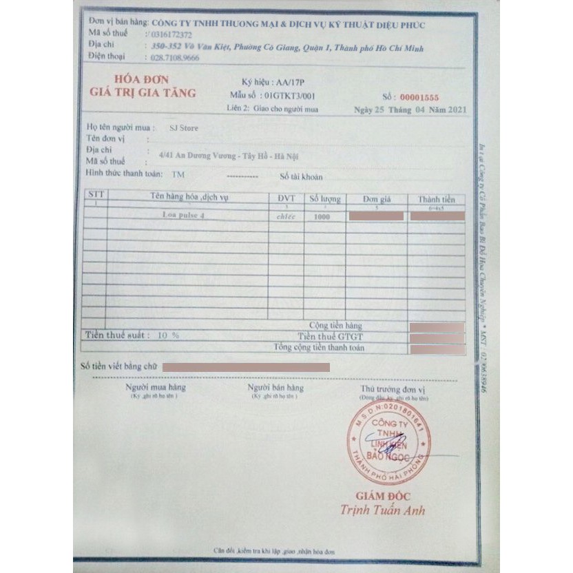 - Hỗ trợ xuất hóa đơn đỏ