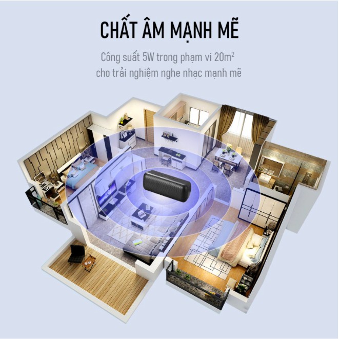 - Sử dụng công suất đầu ra 5W với công nghệ tăng âm trầm cho phép phát nhạc trong phạm vi 20m2.
