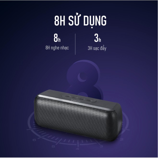 - Công nghệ sạc thông minh, loa chỉ cần 3 giờ để sạc đầy nhưng thời gian nghe nhạc lên đến 8 giờ
