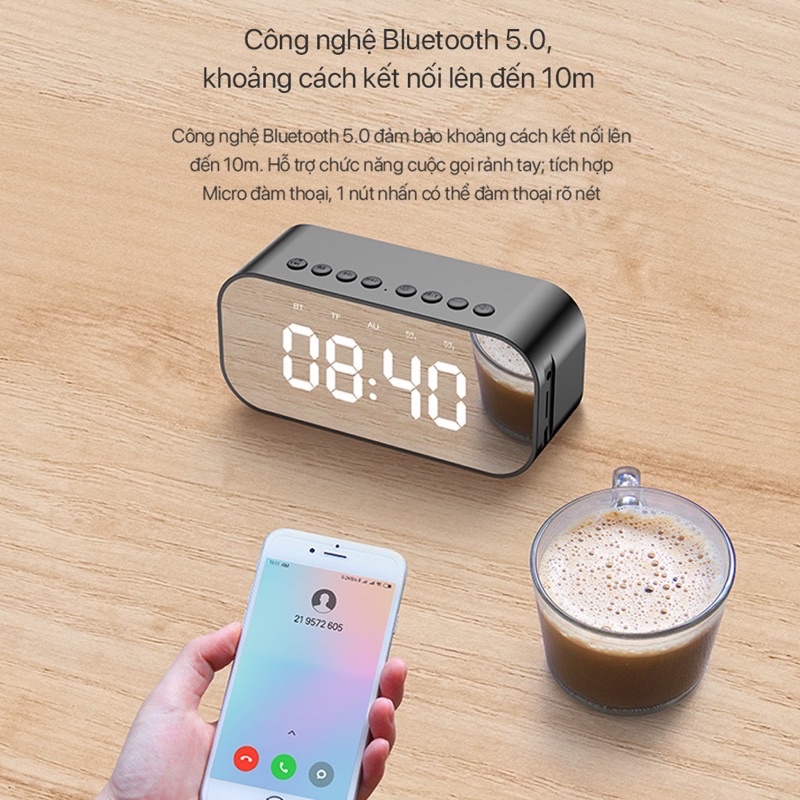 Loa Bluetooth ROBOT RB550 - Kiêm Đồng Hồ Báo Thức Màn Hình LED Tráng Gương | Hỗ Trợ Thẻ Nhớ AUX