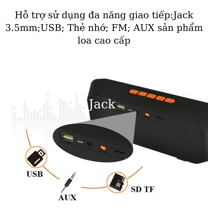 ✅ Thiết kế loa hình chữ nhật với mặt trước là hệ thống loa, mặt trên các phím điều kiển, phím tang giảm âm lượng mặt sau cổng cắm USB, cổng cắm thẻ nhớ, cổng AUX(cổng Jack 3.5mm).