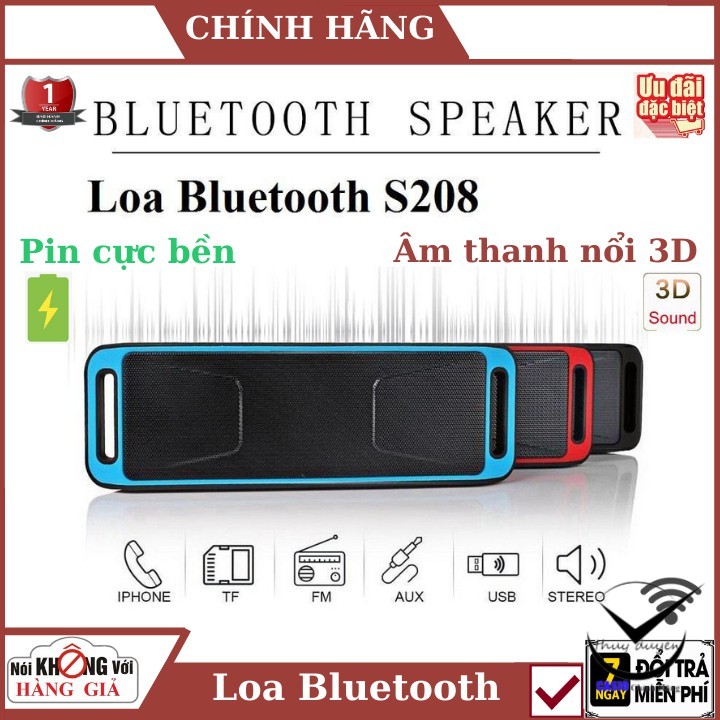 Loa bluetooth S208 loại xịn , loa siêu bass , âm thanh 3D , hỗ trợ bluetooth 4.0 , bảo hành chính hãng