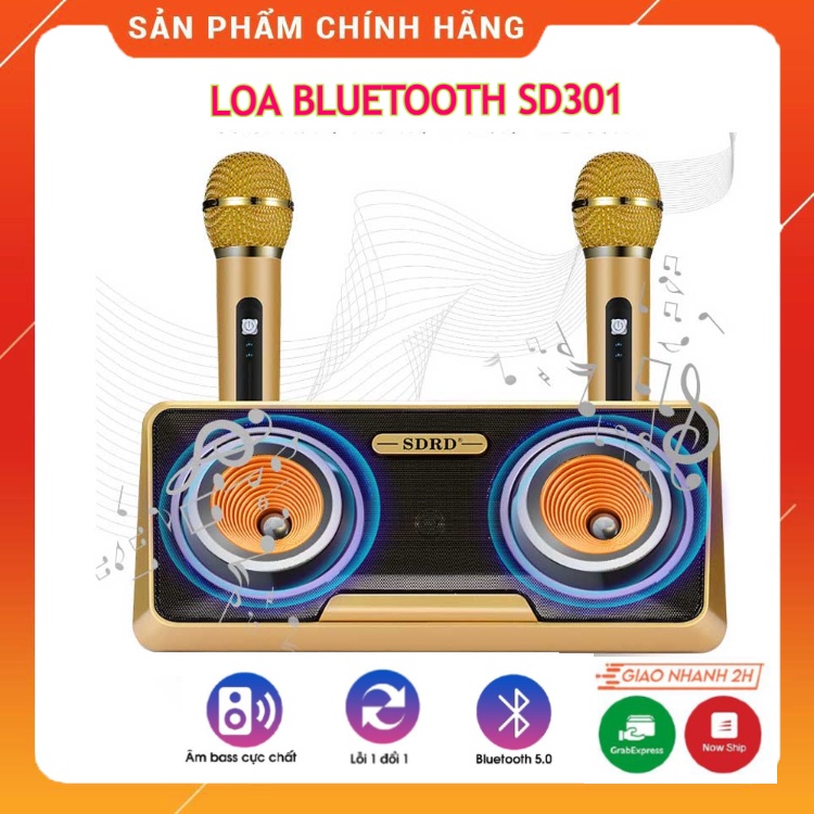 Loa Bluetooth SD-301 Plus. Âm Thanh To, Rõ Ràng, Kiểu Dáng Hình Hộp Cực Sang Trọng. Tặng Kèm 2 Tay Mic, Dễ Dàng Sử Dụng