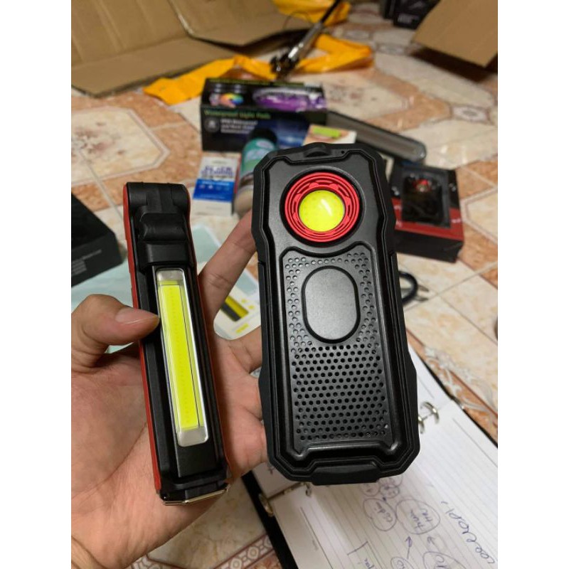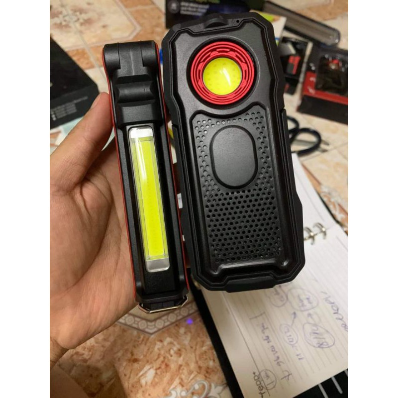 Loa Bluetooth tích hợp đèn pin có thể điều chỉnh độ sángNhỏ gọn, có giá đỡ gác chắc chắn, có nam châm hút rất mạnh.