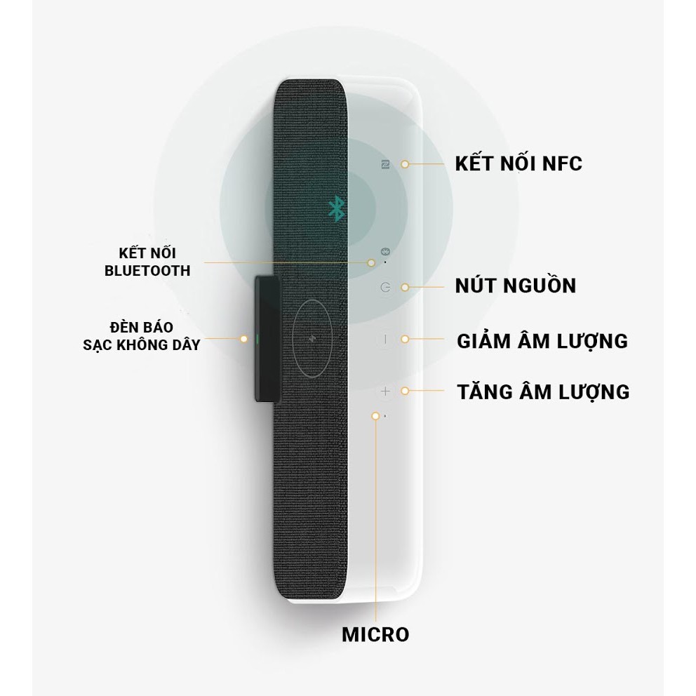 ✔ Loa được tích hợp đế sạc không dây để người dùng có thể phục vụ nhu cầu giải trí mà không lo về vấn đề pin của sản phẩm. Bên trên thiết bị gồm các đèn báo trạng thái, phím nguồn và phím tăng giảm âm lượng giúp người dùng có thể thao tác dễ dàng. Phần vỏ được làm từ nhựa trắng bóng, sang trọng và tinh tế