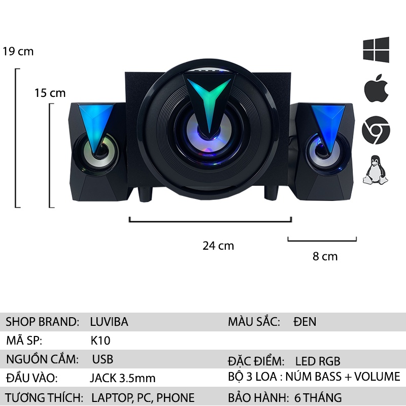 Thiết Bị Âm Thanh > Dàn âm thanh > Loa || Loa bluetooth vi tính máy tính để bàn bass mạnh mini cây để bàn mini đẹp chất có dây giá rẻ LUVIBA K10Còn hàng