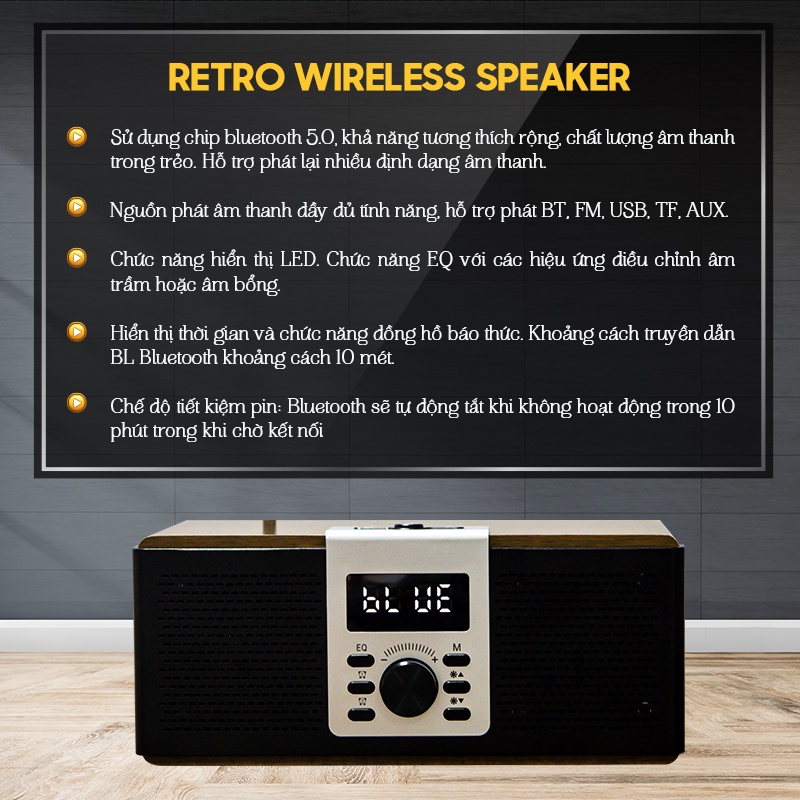 - Nguồn phát âm thanh dây đủ tính năng hỗ trợ phát BT, FM, USB, TF, AUX