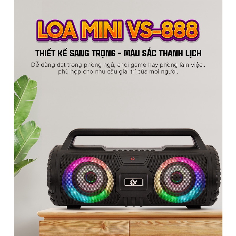 Mô tả sản phẩm Loa mini VS-888, kết nối blutooth, USB hiệu ứng LED, thanh âm tuyệt đỉnh, công suất lớn, bảo hành 6 tháng, đổi trả 7 ngày nếu lỗi sản phẩmLoa mini VS-888, kết nối blutooth, USB hiệu ứng LED, thanh âm tuyệt đỉnh, công suất lớn, bảo hành 6 tháng, đổi trả 7 ngày nếu lỗi sản phẩm