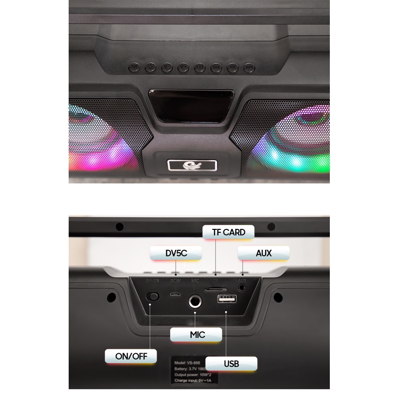 Loa Bluetooth Xách Tay VS-888 tặng kèm Micro, USB hiệu ứng LED, thanh âm cựa hay - Giao màu ngẫu nhiên
