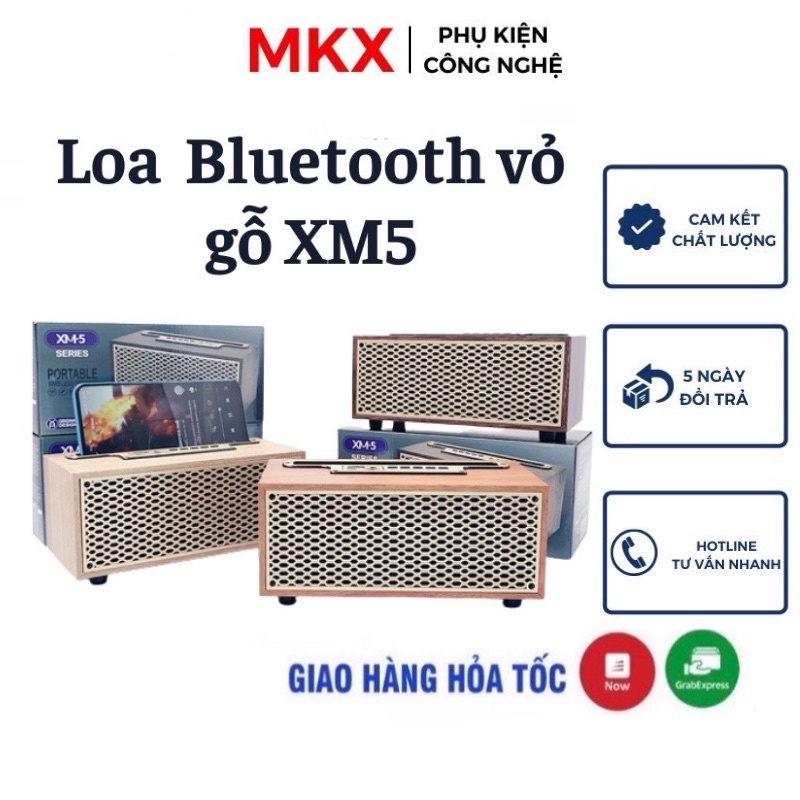 Loa bluetooth XM5 thùng gỗ , thiết kế sang trọng , có giá để điện thoại , âm thanh cực hay MEKAXO