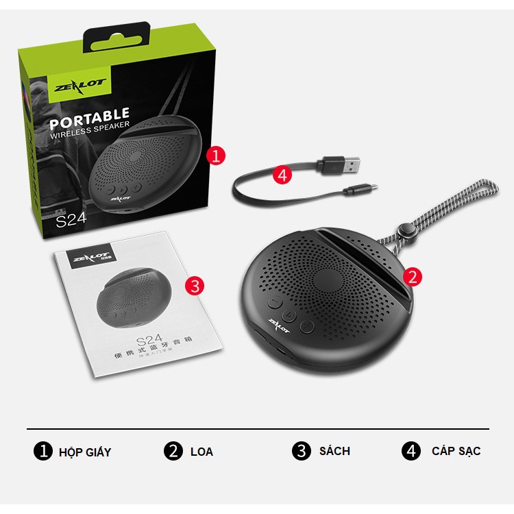 Loa Bluetooth Zealot S24 Kiêm Giá Đỡ Điện Thoại, Âm Thanh Lớn RõBảo hành 3 Tháng 1 đổi 1. Sản phẩm có thể cần mở hộp để kiểm tra trước khi giao.