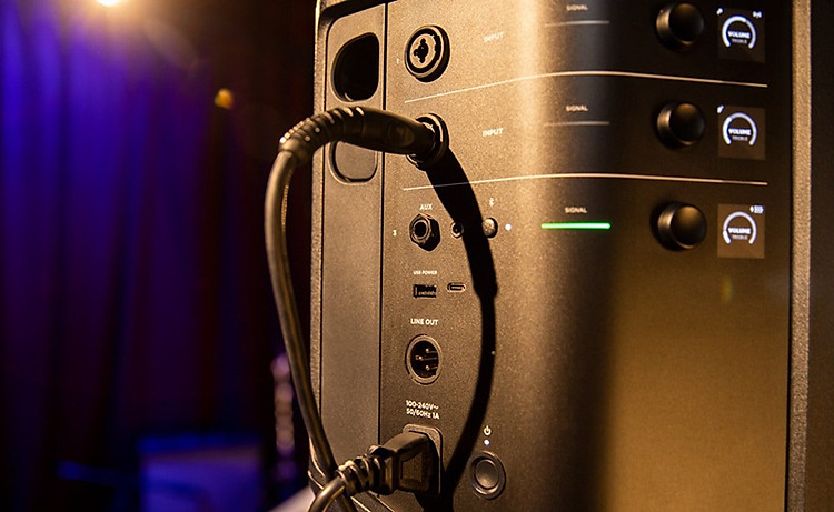 Loa Bose S1 Pro + trang bị cổng AUX, cổng dành cho micro và nhạc cụ để biểu diễn.