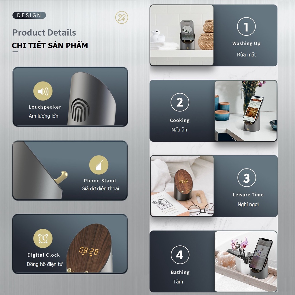 Giới thiệu Loa cảm ứng cộng hưởng thông minh kèm sạc điện thoại, đồng hồ điện tử, báo thức, giá đỡ điện thoại