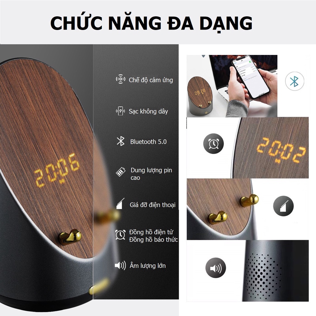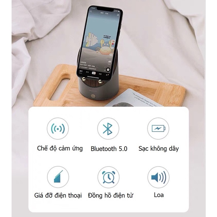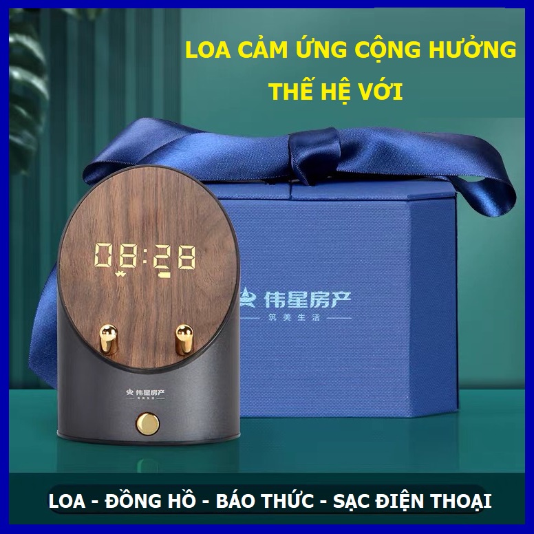 Loa cảm ứng cộng hưởng thông minh kèm sạc điện thoại, đồng hồ điện tử, báo thức, giá đỡ điện thoại