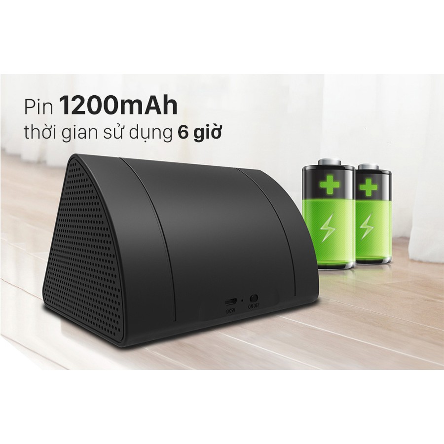 Với dung lượng pin 1200mAh, sản phẩm có thể hoạt động liên tục trong 6 tiếng đáp ứng tốt nhu cầu giải trí của bạn. Loa được sạc pin qua cổng micro USB tiện lợi.