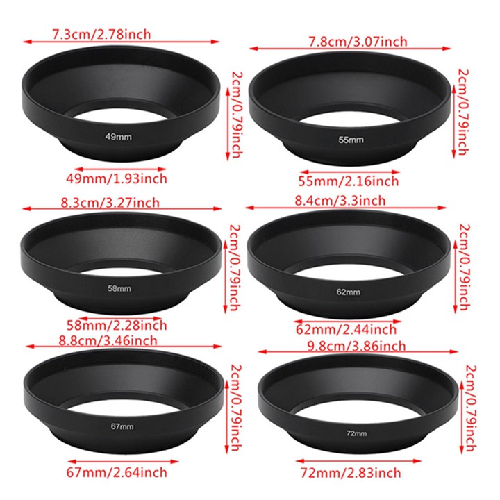 Loa che nắng Nhôm 49mm góc rộng wide angle Lens hood