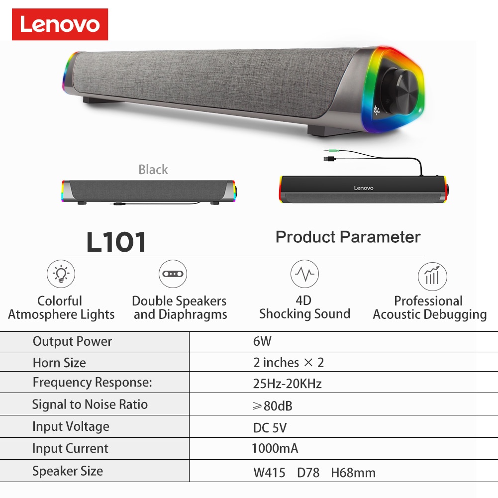 Giới thiệu [Mã ELHACE giảm 4% đơn 300K] Loa có dây soundbar chính hãng Lenovo L101 - Âm thanh vòm 4D - Chất lượng Hi-Fi