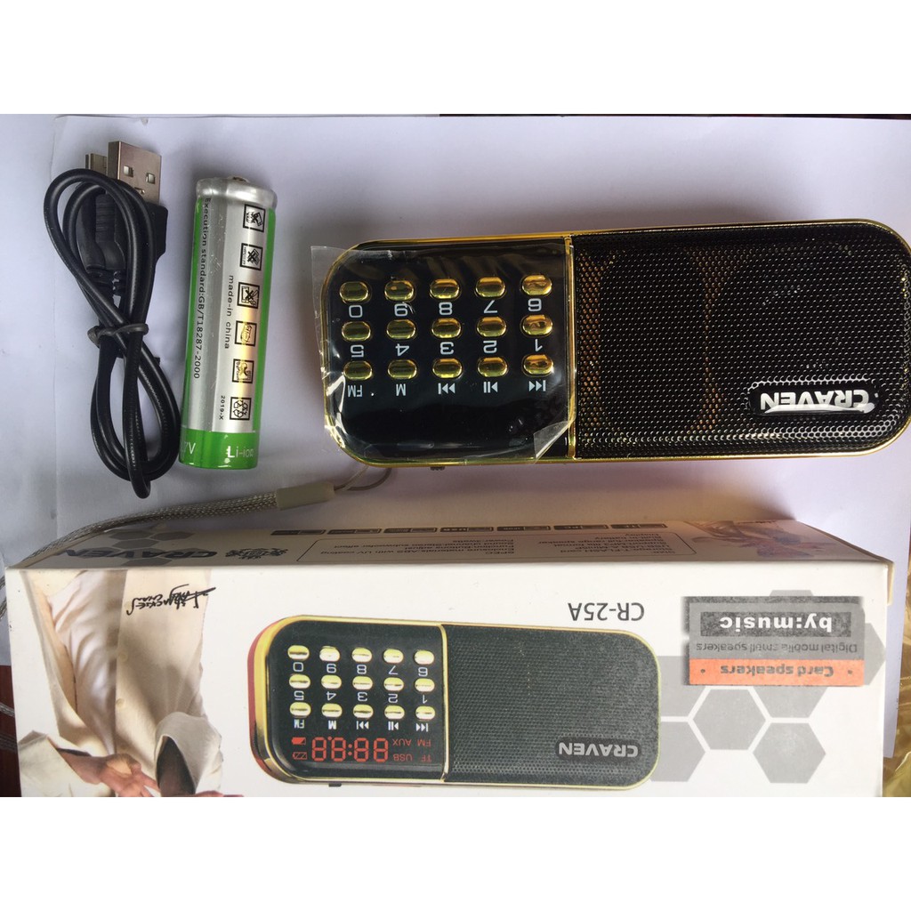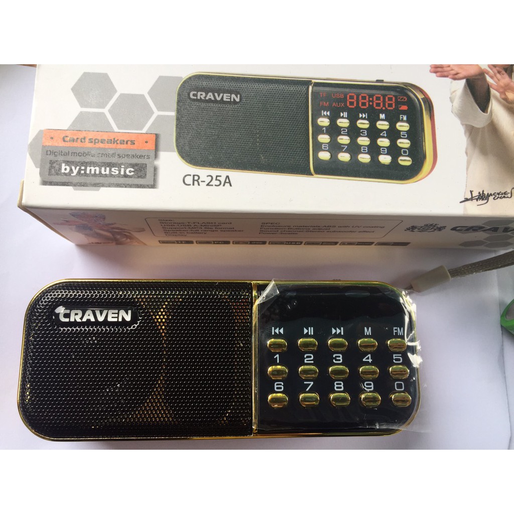 Loa thẻ nhớ Craven CR-25A được thiết kế phát nhạc từ thẻ nhớ, hay kết nối với các thiết bị nghe nhạc, smartphone, máy tính bảng,… Vỏ loa làm bằng nhựa cao cấp mang lại vẻ chắc chắn và sang trọng đến từng đường nét. Đặc biệt, loa còn có chức năng FM radio với hơn 10 kênh phát, cùng với màn hình LCD hiển thị bài hát, dung lượng pin và kênh phát, tạo cho người dùng điều kiện sử dụng dễ dàng hơn.– Loa CR-25 là loa bán chạy nhất trong thời điểm hiện nay